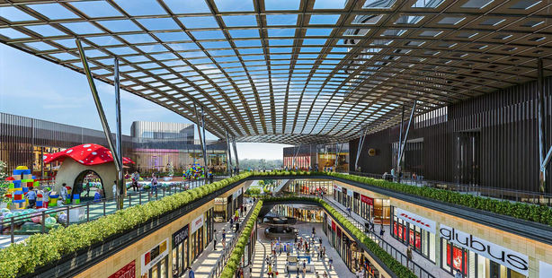 Hospitality Retail with kiosks and eating joints on the second floor.
